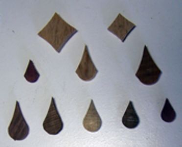Our wood inlays are made in many sizes and shapes. All shapes have scalloped sides that give them a classic, elegant look. Inlays are tapered slightly from topside to help you get a precise fit, without gaps or glue lines.